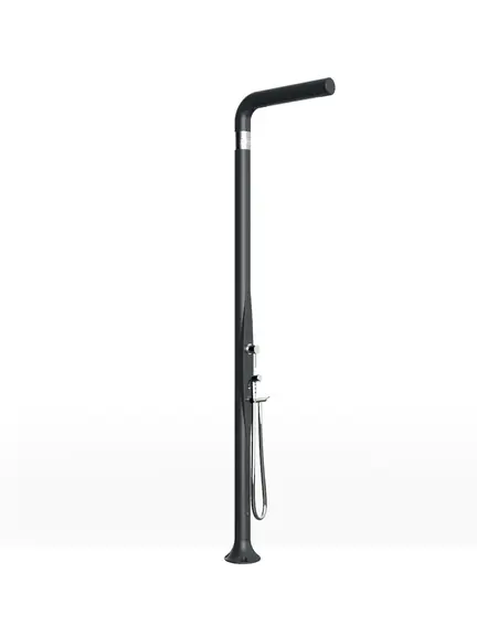 De T245 onderscheidt zich van andere modellen in de serie door de aanwezigheid van een flexibele handdouche met slang. Dit biedt extra vrijheid – of het nu gaat om het afspoelen van lichaam en haar, het reinigen van voeten, het vullen van een emmer of het afspoelen van uitrusting na strand- of zwembadgebruik. De combinatie van bovenhoofd en handdouche maakt de T245 tot een van de meest veelzijdige buitendouches in de serie.